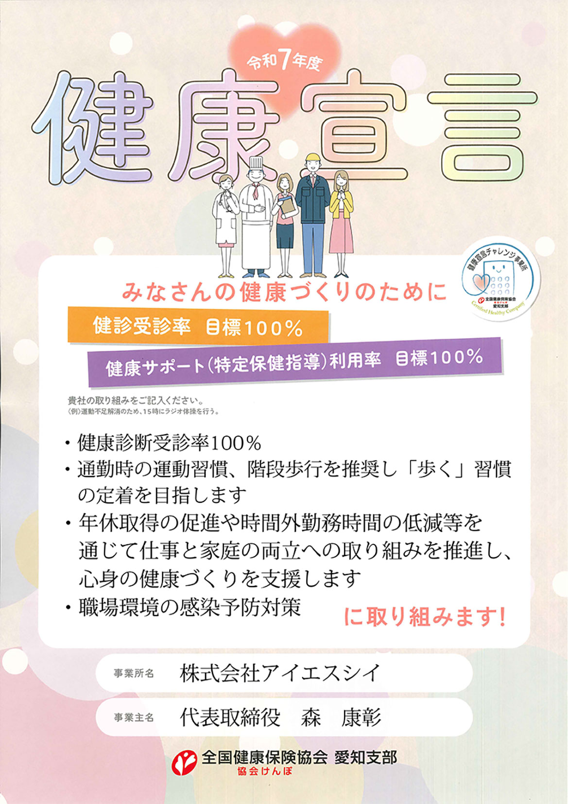 従業員一人ひとりが心身ともに健康で心豊かな生活の実現を目指します。